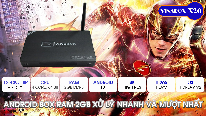 Vinabox X20 Phiên bản 4G ram và 32G rom – được trang bi cấu hình mạnh mẽ: Chip Rockchip RK3328 lõi tứ, Ram 4GB được tối ưu hóa qua hệ sinh thái HDPlay OS trên nền Android 10.0. Điều này cho phép thiết bị hoạt động ổn định, các thao tác được xử lý một cách hết sức mượt mà. Trong số những thiết bị Android TV Box Ram 2GB ở phân khúc tầm trung thì bạn sẽ rất ngạc nhiên về tốc độ xử lý của Vinabox X20, không thấy có gì thua kém so với các model đầu bảng của các thương hiệu cao cấp.